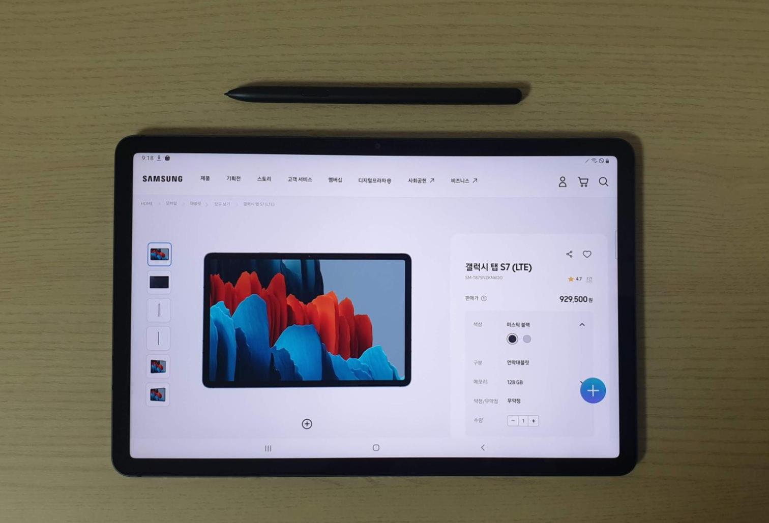 개인적으로 태플릿의 휴대성때문에 구입한 입장이어서 S7의 LTE 모델을 구매했습니다.